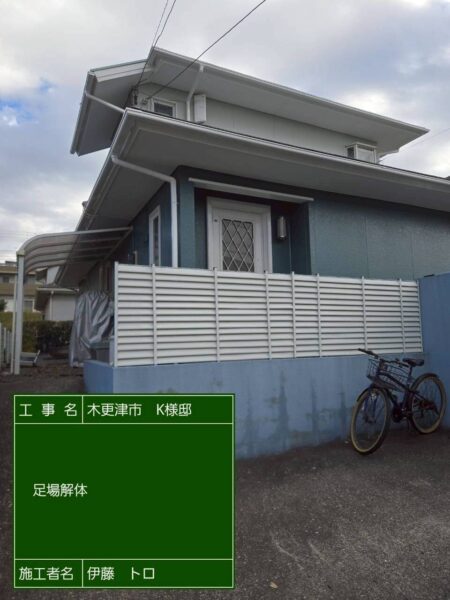 木更津市畑沢南 K様邸 バイオ洗浄、屋根塗装・外壁塗装・付帯部塗装・軒天塗装、温水器撤去処分、テラス屋根脱着2か所