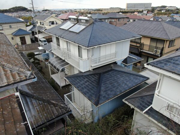 外壁塗装専門店Kirintecではポスティングチラシをきっかけにお問い合わせをいただいた施主様より約10年ぶりとなる外壁塗り替え工事をご依頼いただきましたが、当初のご要望であった不要な屋根温水器の撤去を含めた現地調査およびドローンによる診断を実施した直後にご家族の事情により一時中断となったものの、約1年後の状況確認を経て改めてご提案の機会をいただき、他社を含む3社での相見積もりの中で弊社の施工内容を高く評価してくださったことから、在庫塗料を有効活用することでコストを抑えつつ品質を維持する特別割引プランにてご契約を承りました。配色は弊社一任という条件ながらも施主様のご希望を最大限に反映できるよう細部まで工夫を凝らして色分けを行った結果、完成後の仕上がりは親子共々大変ご満足いただける意匠性の高い住まいへと生まれ変わりました。