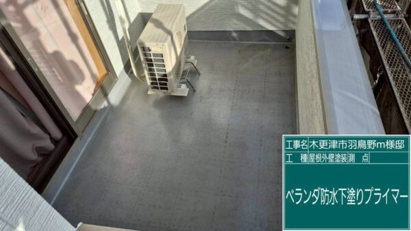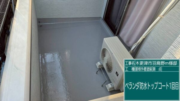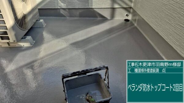 ベランダは防水層の劣化が見られたため、トップコートを再施工し防水性を向上させています。