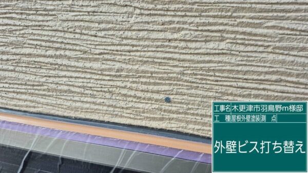 施工中に外壁のビスがかなり浮いている箇所が見つかったため、すべて打ち替えを行い固定力を改善しました。
