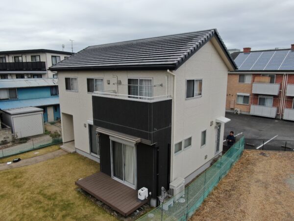 築16年のミサワホーム施工物件にお住まいで、ハウスメーカーによる点検後の見積り価格にご検討を重ねられていた折、弊社の折り込みチラシをご覧になりお問い合わせをいただいたお客様の施工事例をご紹介いたします。現地調査の結果、外壁の状態は良好でしたが塗り替え時期に差し掛かっており、特にベランダのFRP床面には亀甲状のクラックが見受けられたため、表面のトップコート塗装ではなく耐久性を重視したFRP防水のワンプライ工法による補修をご提案いたしました。外壁には低汚染性と高耐久を両立した遮熱フッ素塗料を採用し、色選びにおいてはカラーシミュレーションに加え、大きな塗り板見本を実際の壁面に照らし合わせながら入念に打ち合わせを重ねた結果、洗練されたツートンカラーのグレーを選定されました。ベランダ防水工程において一部塗り残しが発生し、修正対応のため工期を延長させていただく場面もございましたが、最終的に品質の高い仕上がりをご確認いただき、施工後のアンケートでも温かいお言葉を賜ることができました。