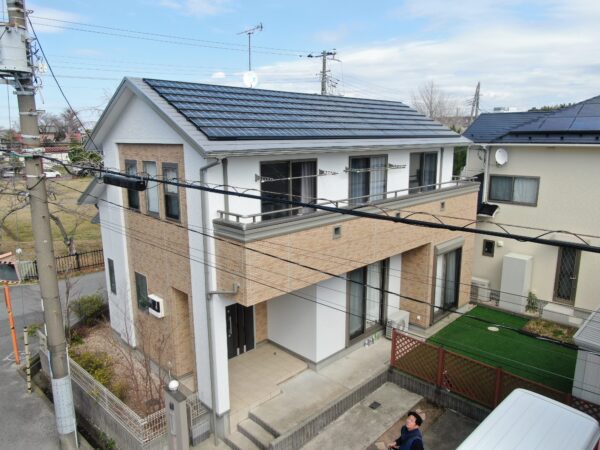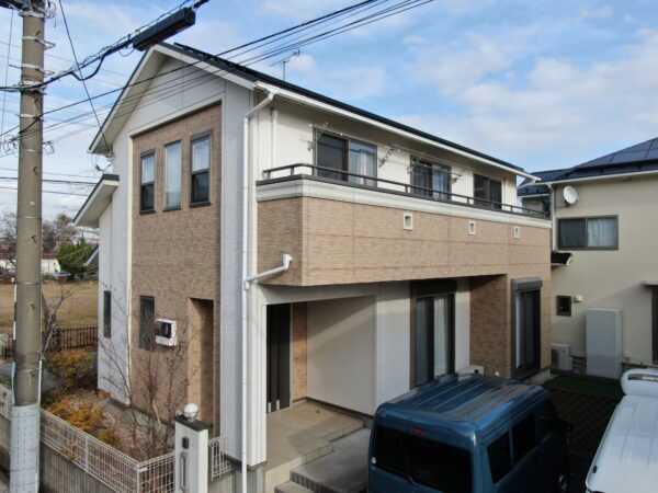 弊社ホームページからお問い合わせをいただいたことをきっかけに、借用中の住宅購入に伴う住宅ローン一体型のリフォームとして外壁・屋根塗装のご依頼を承り、新昭和住宅施工の建物の特性に合わせた綿密な現地調査を経て、タイル柄サイディングの意匠性を保持するフッ素樹脂UVクリア塗装、および苔や汚れに強いフッ素樹脂遮熱塗料と屋根用の無機遮熱塗料をご提案した結果、他社比較の中で施工品質と価格をご評価いただき、コーキングの打ち替えや塗り分け工程に時間をかけ細部まで徹底してこだわり抜くことで、施主様より今後の住まいに関するご相談も確約いただけるほどの高い満足度を誇る仕上がりを実現いたしました。